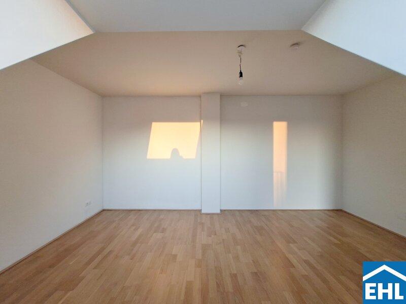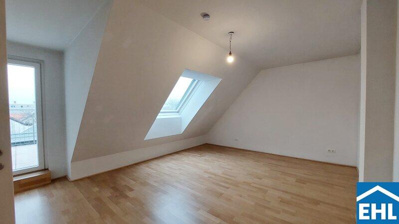 Die Wohnung selbst befindet sich im 1. Dachgeschoß und verfügt über eine Wohnküche, zwei Schlafzimmer, ein Badezimmer mit Dusche, WC und Waschmaschinenanschluss, ein separates WC, sowie einen Vorraum. Zwei Balkone runden das Wohnerlebnis ab.