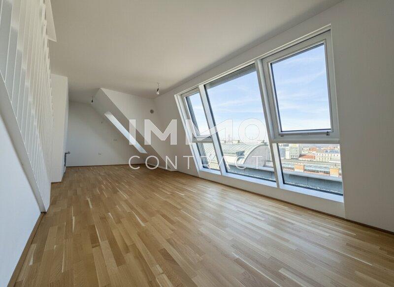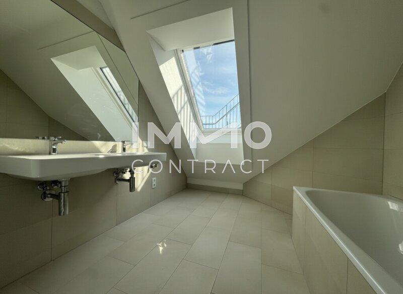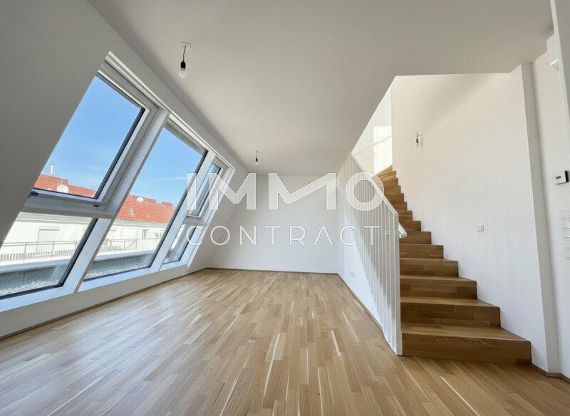 Willkommen in Ihrem neuen Zuhause: Diese großzügige, zentral begehbare und vollklimatisierte 3-Zimmer-Dachgeschosswohnung überzeugt mit rund 86 m² Wohnfläche sowie einer privaten Dachterrasse mit herrlichem Weitblick über Wien. Großflächige Dachfenster lassen viel Tageslicht in die Räume und schaffen ein besonders helles und angenehmes Wohnambiente. Das Herzstück bildet die rund 30 m² große Wohnküche mit direktem Zugang zur Terrasse, während zwei gut geschnittene Schlafzimmer, ein Badezimmer mit Doppelwaschbecken und Badewanne sowie ein separates WC für hohen Wohnkomfort sorgen. Über eine innenliegende Treppe gelangen Sie schließlich auf die private Dachterrasse ein perfekter Ort, um entspannte Stunden über den Dächern der Stadt zu genießen.