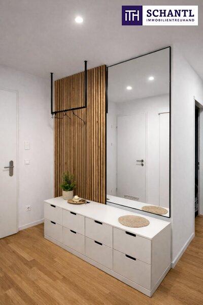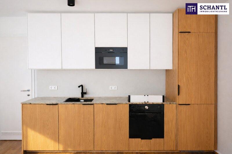 Die Wohnung befindet sich im 2. Stock und überzeugt durch eine besonders effiziente Raumaufteilung. Herzstück ist die großzügige Wohnküche, ausgestattet mit einer Designerküche mit eleganten Holzfronten und hochwertiger Stein-Arbeitsplatte, die modernes Design mit Funktionalität verbindet.