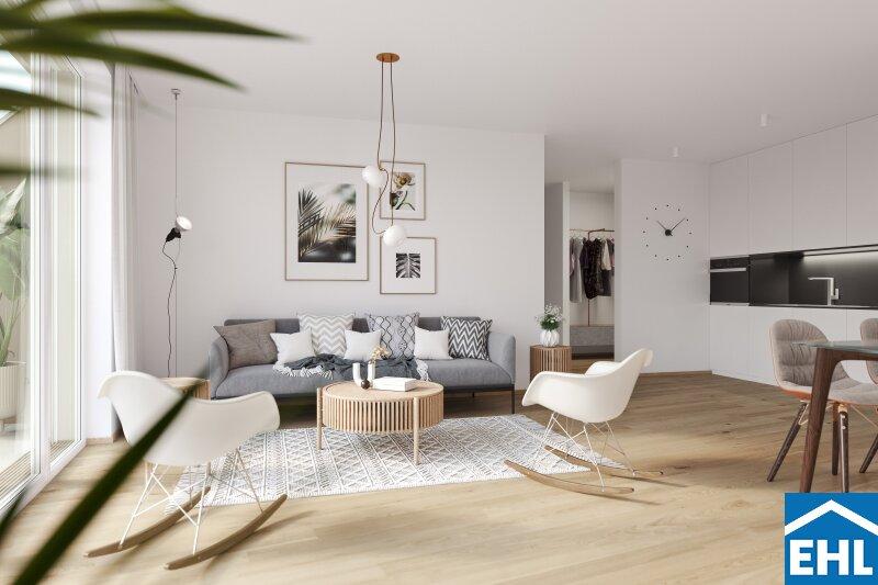 Hier stehen 83 attraktive, bereits bezugsfertige Wohnungen, umgeben von großzügigen Freiflächen, zum Verkauf. Ob mit einem gemütlichen Eigengarten, Balkon oder Terrasse diese neue Wohnhausanlage bietet für jeden Wunsch die perfekte Außenfläche.