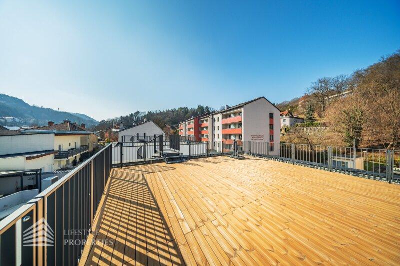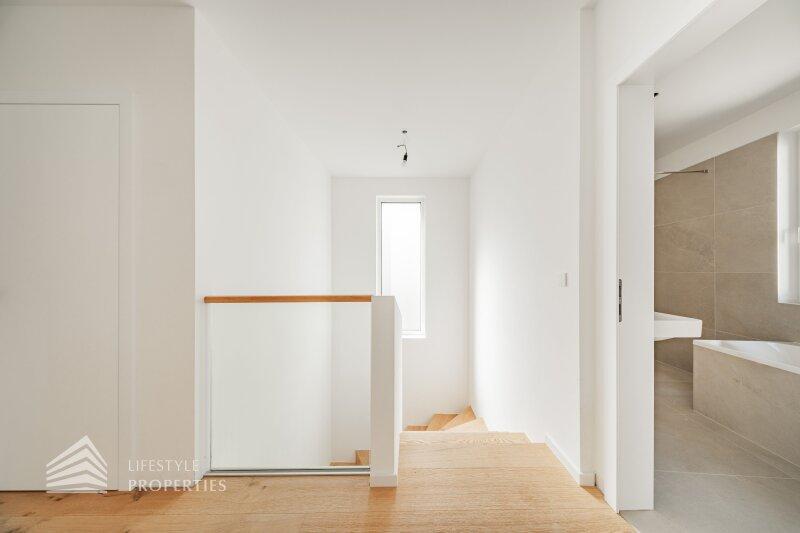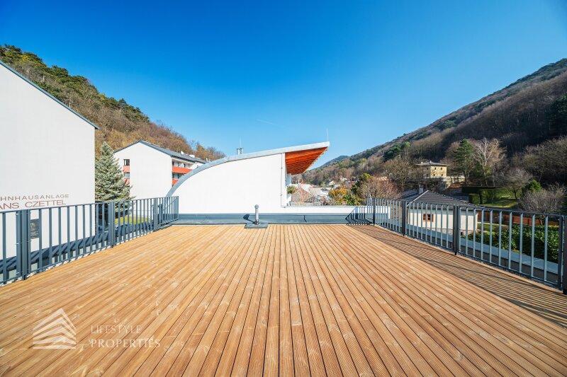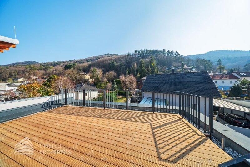 Erleben Sie exklusives Wohnen auf höchstem Niveau: Dieses stilvolle, moderne Wohnhaus verbindet zeitlose Architektur, hochwertige Materialien und innovative Haustechnik zu einem einzigartigen Wohnambiente. Großzügige Fensterflächen durchfluten die Räume mit Tageslicht, während die private Dachterrasse, die sonnige Terrasse im Erdgeschoss und der direkt zugängliche Garten ungestörte Ausblicke ins Grüne bieten und zu entspannten Stunden im Freien einladen. Ein Carport für zwei Fahrzeuge, Smart-Home-Steuerung sowie ein App-gesteuertes Alarmsystem sorgen für höchsten Komfort und Sicherheit. Natur, Stil und modernste Technik treffen hier harmonisch aufeinander und schaffen ein exklusives Zuhause, nur wenige Kilometer von Wien entfernt, mit rascher Anbindung an die Innenstadt und die schönsten Naherholungsgebiete des Wienerwaldes.