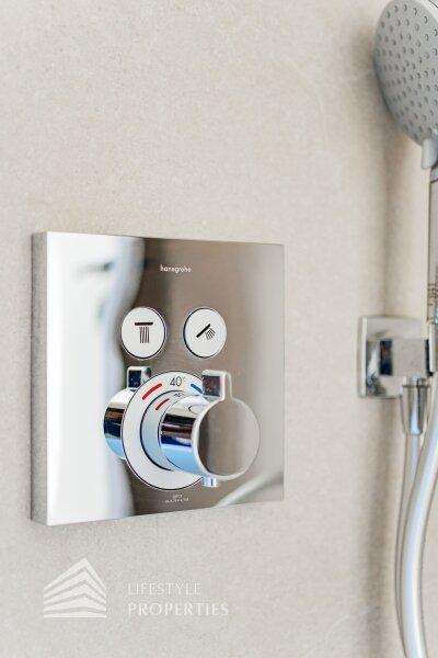 Die gesamte Haustechnik und Ausstattung wurde nach modernsten Standards umgesetzt: Fußbodenheizung mit Einzelraumregelung, die Wärmeversorgung erfolgt über eine dezentrale Luftwärmepumpe mit Pufferspeicher für jede Wohneinheit, Smart-Home-System (GIRA KNX oder gleichwertig) zur Steuerung von Licht, Raffstores und Temperatur, App-gesteuertes Alarmsystem, Videogegensprechanlage mit Smartphone-Anbindung, elektronisches Türöffnungssystem (Fingerprint, Zahlencode oder Schlüssel), hochwertiges Marken-Eichenparkett (Weitzer, Langdiele), italienisches Feinsteinzeug in den Bädern, Sanitärobjekte von Laufen Pro S, Armaturen von Hansgrohe, bodengleiche Dusche mit Echtglasabtrennung, elektrische Raffstores an allen Fenstern, Vorbereitung für Split-Klimaanlage (Außengeräte im Gartenbereich, Innengeräte im Wohnzimmer oder Stiegenaufgang (Installation nach Wunsch und gegen Aufpreis), Vorbereitung für E-Ladestation.