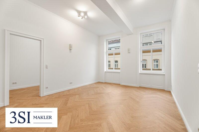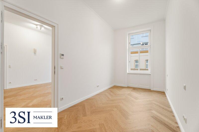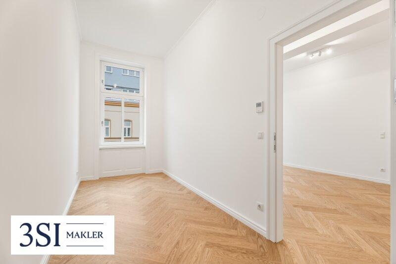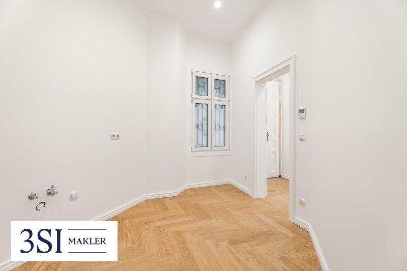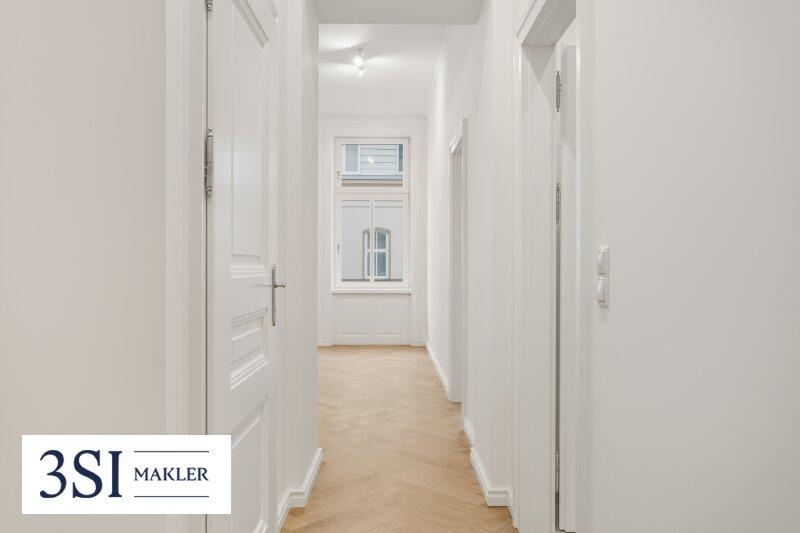 Die Wohnung präsentiert sich im Erstbezug nach Top-Sanierung mit hochwertigem Eichen-Fischgrätparkett, klassischen Altbautüren und wunderschön aufgearbeiteten Altbaufenstern, was den Räumen ein stilvolles Ambiente verleiht und den zeitlosen Charakter des Hauses unterstreicht.