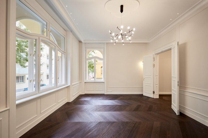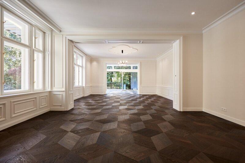 Die beeindruckende Villa verbindet in drei großzügigen Wohneinheiten den Zauber vergangener Epochen mit dem Luxus und Komfort der Moderne. Jede Räumlichkeit ist eine einzigartige Fusion aus Exklusivität, Bequemlichkeit und historischem Charme, während der malerische Garten eine außergewöhnliche Atmosphäre der Entspannung bietet. Jede Wohnung glänzt durch eine erstklassige Ausstattung, welche den anspruchsvollen Lebensstil seiner Bewohner hervorhebt. Vom edlen Fußboden über topmoderne Küchen und Badarmaturen bis hin zu hochwertigen Materialien wurde jedes Detail bedacht und sorgfältig ausgewählt. Hier steht Komfort an vorderster Stelle. Genießen Sie den außergewöhnlichen Luxus dieser prachtvollen Villa und erfreuen Sie sich an dem einzigartigen Lebensgefühl inmitten einer grünen Oase. Die Nähe zum Schlosspark Schönbrunn und den Annehmlichkeiten von Hietzing bietet Ihnen dabei das Beste aus beiden Welten.