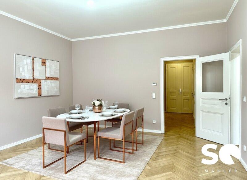 Die Wohnung wurde 2011 generalsaniert und soeben saniert, sodass alles im neuwertigen Glanz erstrahlt. Historische Elemente wie Stuckatur treffen hier auf ein modernes Beleuchtungskonzept mit stilvollen Wandleuchten, edle Materialien und zeitloses Design.