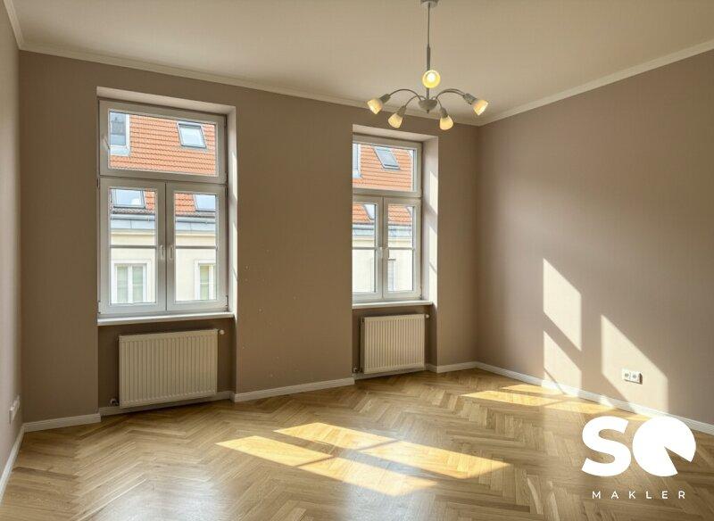 Eine seltene Gelegenheit! In dieser gefragten und zugleich trendigen Wohnlage des 6. Bezirks befindet sich diese außergewöhnlich gut geschnittene Altbauwohnung mit ca. 54 m² Wohnfläche. Sie liegt im dritten Liftstock eines 2011 generalsanierten und bis heute sehr gepflegten Hauses aus der Jahrhundertwende. Hier überzeugt die seltene Kombination aus Altbauflair, modernem Wohnkomfort und durchdachter Raumplanung.