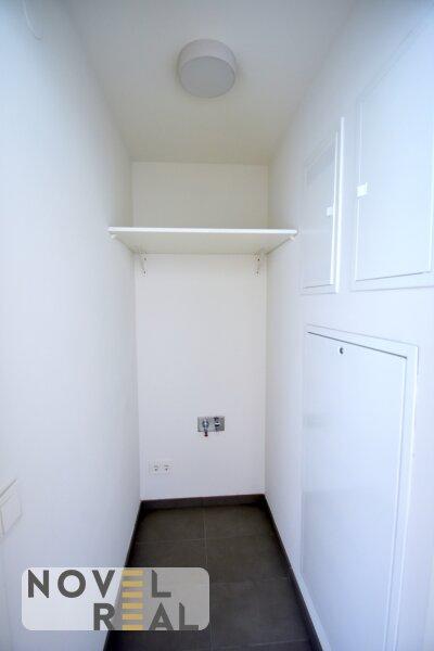 - Abstellraum mit tiefen Wandregalen und Anschluss für Waschmaschine und Trockner