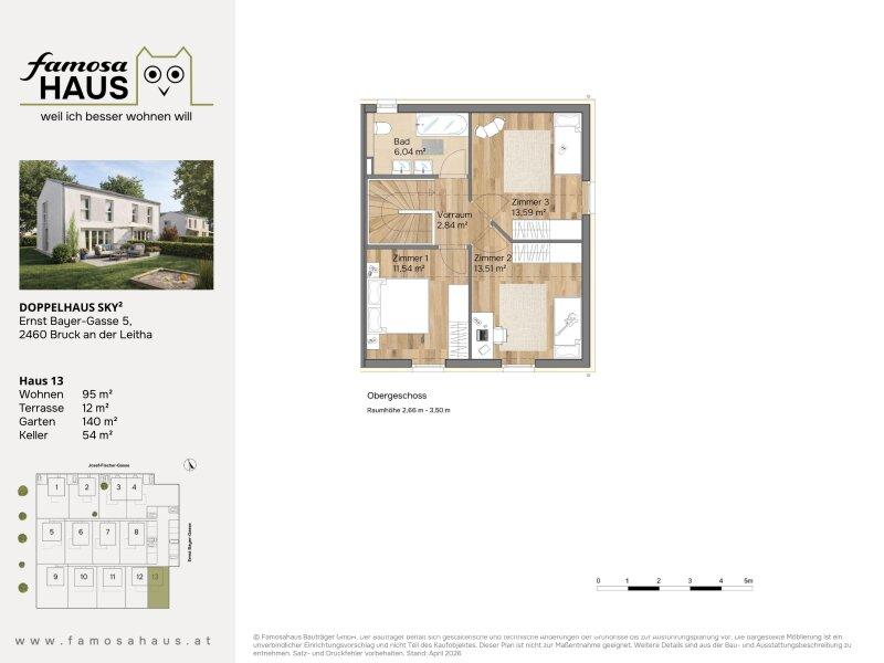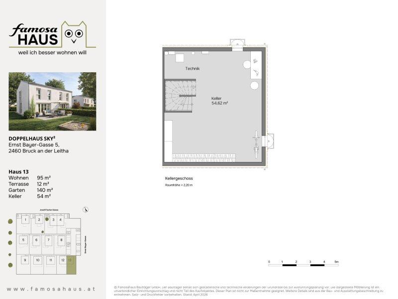 Die Vollunterkellerung schafft wertvollen Raum für alles, was im Familienalltag Platz braucht: Stauraum, Vorräte, Hobby oder Fitness. Drei Schlafzimmer bieten Rückzugsmöglichkeiten für jedes Familienmitglied. Im Obergeschoss sorgt eine Raumhöhe von bis zu 3,50 m für spürbare Weite und ein besonders luftiges Wohngefühl. Massiv in Ziegelbauweise errichtet und ausgestattet mit Luftwärmepumpe, Fußbodenheizung und PV-Anlage, verbindet Sky² nachhaltigen Komfort mit niedrigeren Energiekosten. Zwei Parkplätze sind inklusive weil ich besser wohnen will.