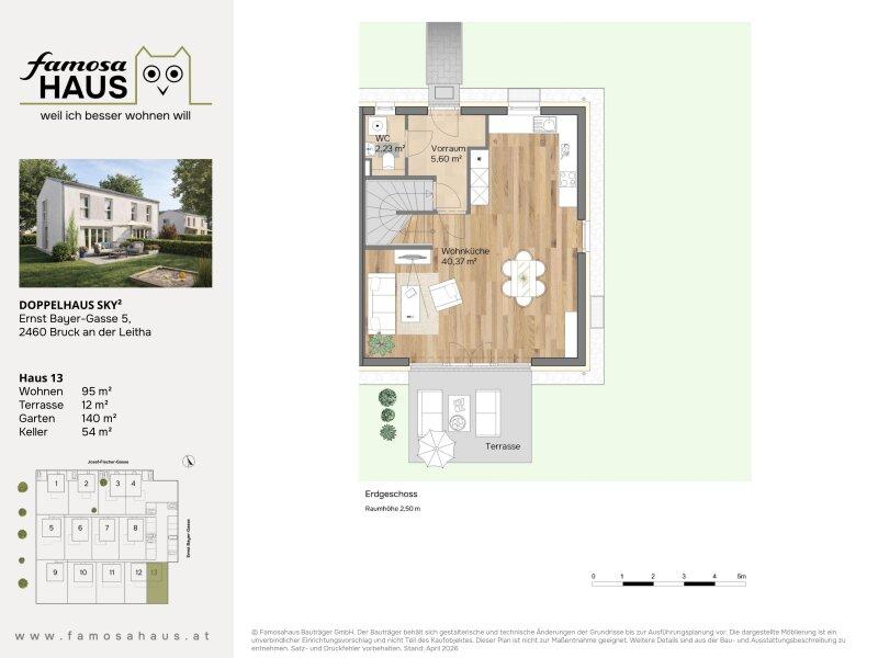 Die dargestellten Schaubilder wurden teilweise digital bearbeitet bzw. mithilfe künstlicher Intelligenz visualisiert. Sie dienen ausschließlich der beispielhaften Darstellung von Einrichtungs- und Gestaltungsmöglichkeiten und stellen keinen verbindlichen Ausführungs- oder Lieferumfang dar. Maßgeblich für die tatsächliche Ausführung sind ausschließlich die vertraglichen Vereinbarungen, Bau- und Ausstattungsbeschreibungen sowie die genehmigten Pläne. Abweichungen in Ausstattung, Materialien, Farben, Möblierung oder Bepflanzung sind möglich.