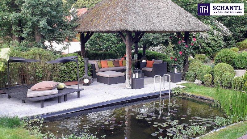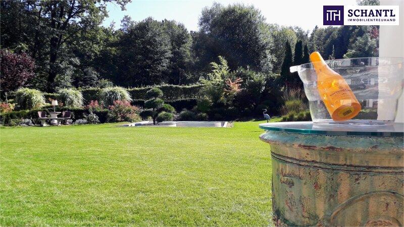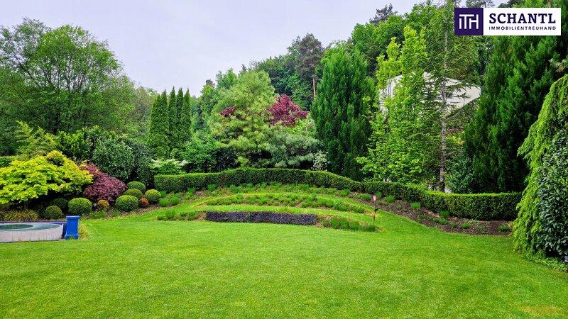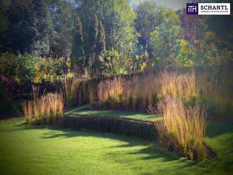 1.500 m² Parkgarten, sorgfältig gestaltet wie ein kleines Naturkunstwerk. Jeder Blick aus dem Haus öffnet sich in dieses grüne Refugium, vollkommen uneinsichtig und einzigartig ein Ort, an dem man sofort durchatmet.