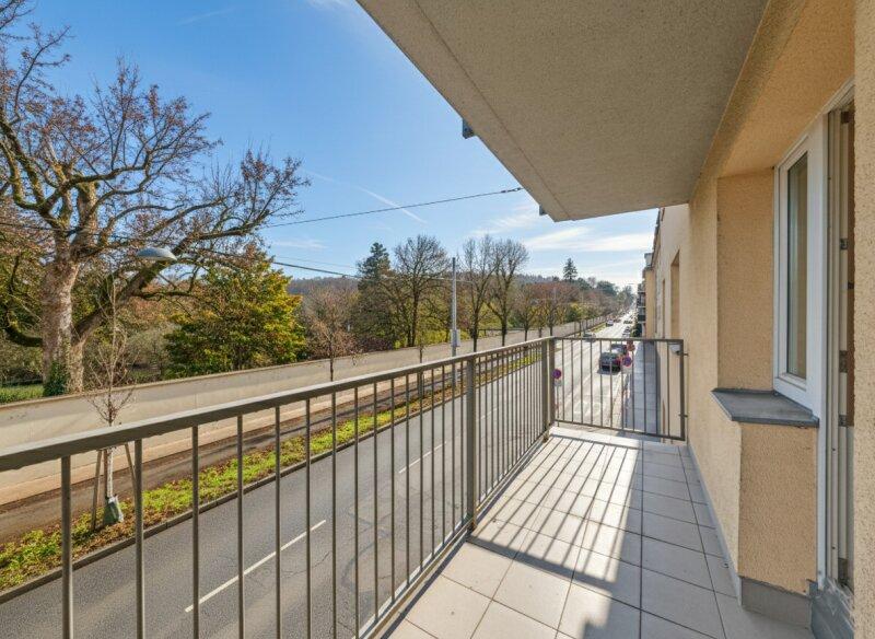 Der großzügige Balkon bietet einen herrlichen Blick in den Botanischen Garten des Schönbrunns und stellt eine attraktive Freifläche mit ansprechender Aussicht dar.