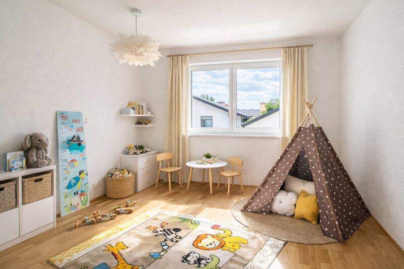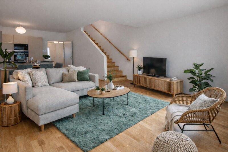 Herzstück ist die großzügige Wohnküche, die sich zum sonnigen Garten öffnet perfekt für gemeinsames Kochen, entspannte Nachmittage und lange Abende im Freien. Auf den Wohnebenen ergänzen zwei Schlafzimmer, ein Schrankraum und ein Badezimmer das stimmige Raumkonzept.
