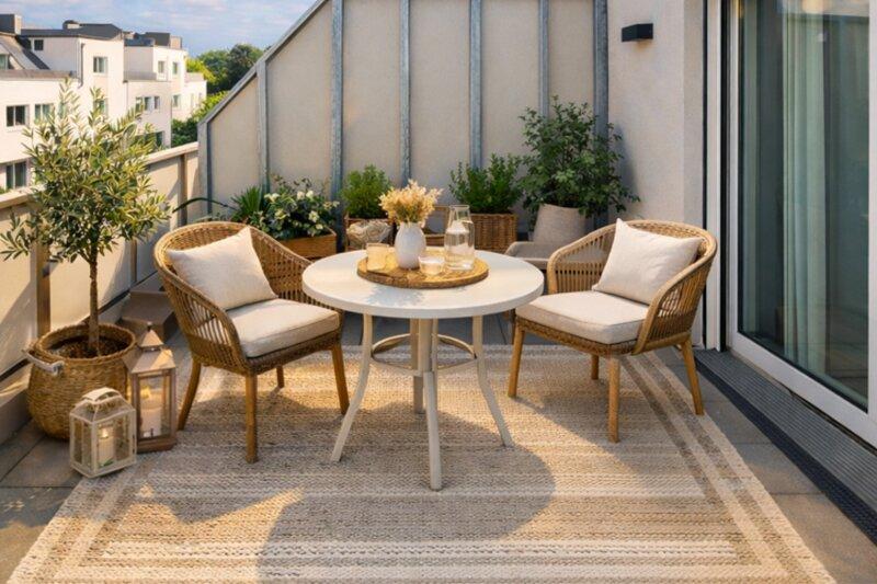 Die dargestellten Schaubilder wurden teilweise digital bearbeitet bzw. mithilfe künstlicher Intelligenz visualisiert. Sie dienen ausschließlich der beispielhaften Darstellung von Einrichtungs- und Gestaltungsmöglichkeiten und stellen keinen verbindlichen Ausführungs- oder Lieferumfang dar. Maßgeblich für die tatsächliche Ausführung sind ausschließlich die vertraglichen Vereinbarungen, Bau- und Ausstattungsbeschreibungen sowie die genehmigten Pläne. Abweichungen in Ausstattung, Materialien, Farben, Möblierung oder Bepflanzung sind möglich.