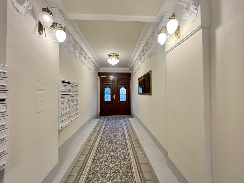 Dieser klassischer Wiener Stilaltbau ist eine 4-geschoßige Eckliegenschaft mit einer gegliederten Fassade, welche sich in einem guten und gepflegten Gesamtzustand befindet. Insgesamt stehen 29 Einheiten zum Verkauf, neben den bestandsfreien Einheiten können noch 6 unbefristet vermietete Wohnungen und ein ca. 165  großes Geschäftslokal als Investment erworben werden.