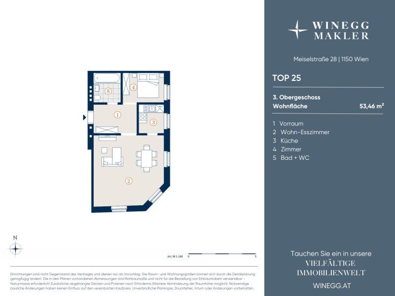 Die Liegenschaft befindet sich in der ruhig gelegenen Meiselstraße, in unmittelbarer Nähe zur U3-Station Johnstraße und zum Meiselmarkt.