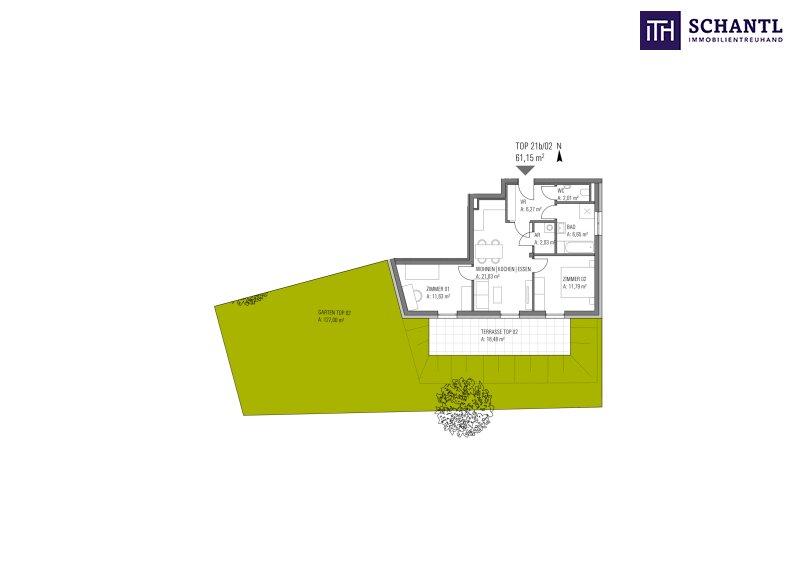 Mit einer großzügigen Wohnfläche von 63 m² sowie sensationelle 193 m² Eigengarten.