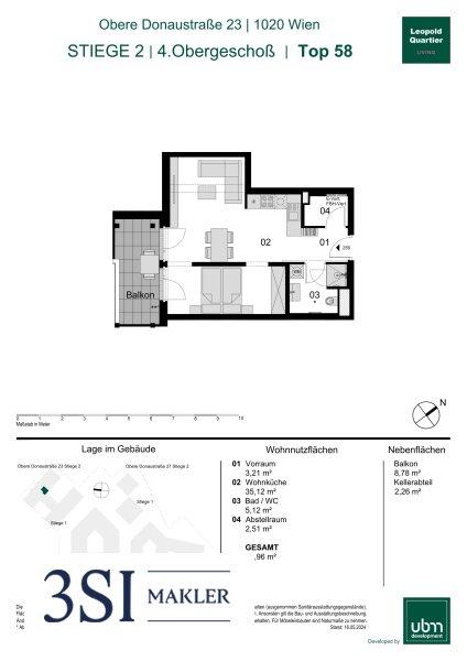 Diese moderne Wohnung befindet sich im 4. Obergeschoß. Die Einheit verfügt über eine Wohnnutzfläche von ca. 46 m² und bietet zusätzlich einen ca. 9 m² großen Balkon.