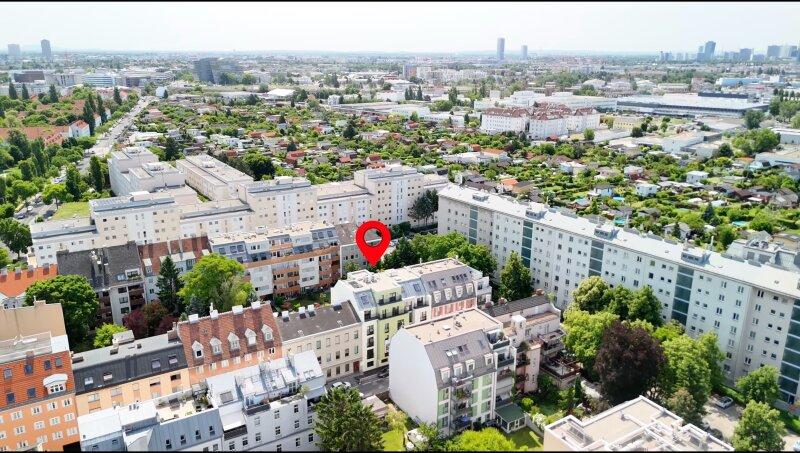 Das Wohnhaus befindet sich im dynamischen 21. Wiener Gemeindebezirk Floridsdorf, einer Gegend mit ausgezeichneter Infrastruktur, zahlreichen Grünflächen und hoher Familienfreundlichkeit. Dank der guten Anbindung an den öffentlichen Nahverkehr (U6-Station Floridsdorf sowie Straßenbahnen 30, 31 und Buslinien wie 30A, 31A, 32A) sind das Stadtzentrum und weitere Bezirke schnell erreichbar. Die nahegelegene Donauinsel bietet vielseitige Freizeitmöglichkeiten, von Sport über Erholung bis hin zu Gastronomieangeboten.