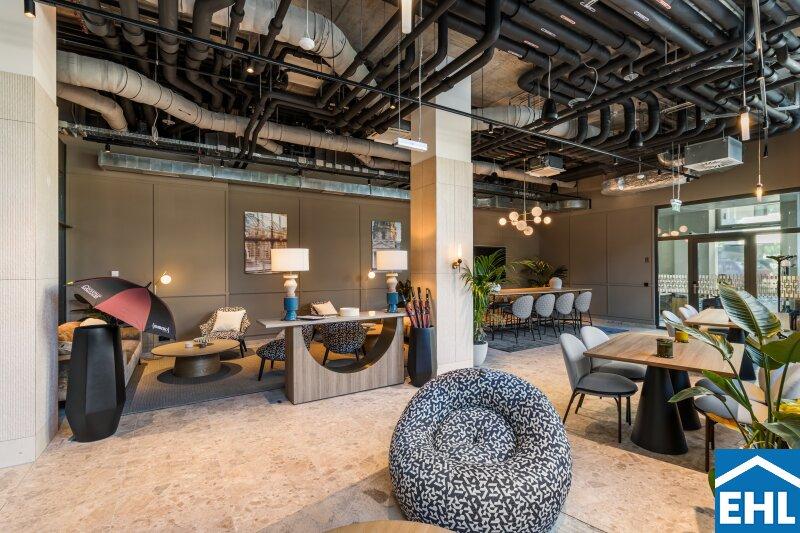 Neben Ihrem privaten Wohnbereich profitieren Sie von großzügigen, hochwertig gestalteten Gemeinschaftsflächen, die weit über das Übliche hinausgehen: Ob konzentriertes Arbeiten im Co-Working Space, entspannte Stunden in der stilvollen Bewohner Lounge oder aktive Pausen im hauseigenen Fitness- und Yogastudio hier finden Sie genau den Ort, den Sie gerade brauchen. Für gesellige Momente stehen Ihnen ein exklusiver Private-Dining-Raum, ein Gaming Room und ein einladender Kinosaal zur Verfügung. Wer kreativ tätig werden möchte, findet im professionell ausgestatteten Podcast Raum den idealen Rahmen. Ein besonderes Highlight ist die grüne Dachterrasse mit Gemeinschaftsgarten ein Rückzugsort über den Dächern der Stadt, der zum Entspannen, Gärtnern und Genießen einlädt.