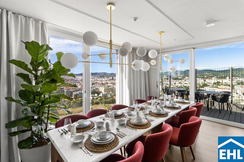 Neben Ihrem privaten Wohnbereich profitieren Sie von großzügigen, hochwertig gestalteten Gemeinschaftsflächen, die weit über das Übliche hinausgehen: Ob konzentriertes Arbeiten im Co-Working Space, entspannte Stunden in der stilvollen Bewohner Lounge oder aktive Pausen im hauseigenen Fitness- und Yogastudio hier finden Sie genau den Ort, den Sie gerade brauchen. Für gesellige Momente stehen Ihnen ein exklusiver Private-Dining-Raum, ein Gaming Room und ein einladender Kinosaal zur Verfügung. Wer kreativ tätig werden möchte, findet im professionell ausgestatteten Podcast Raum den idealen Rahmen. Ein besonderes Highlight ist die grüne Dachterrasse mit Gemeinschaftsgarten ein Rückzugsort über den Dächern der Stadt, der zum Entspannen, Gärtnern und Genießen einlädt.