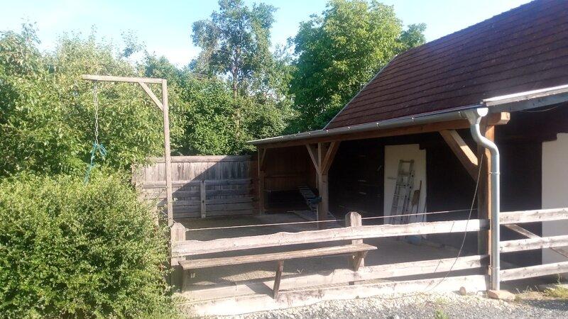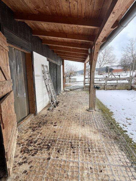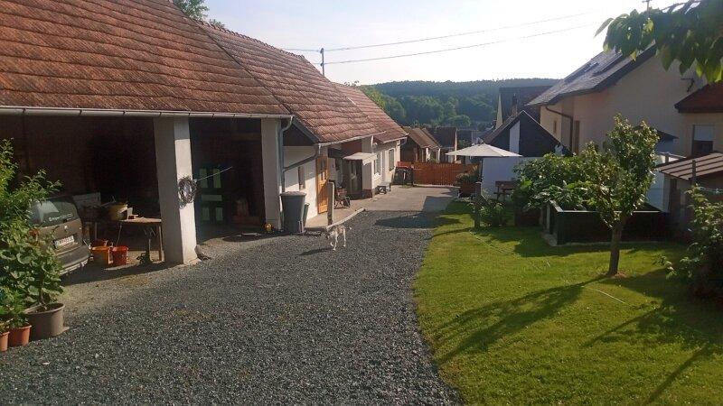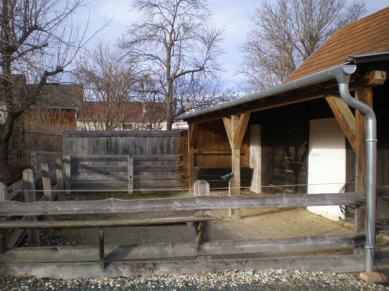 Die Liegenschaft ähnelt einem Streckhof, hat ein großes Einfahrtstor zum Innenhof, einen offenen großen Schuppen, Nebengebäude, eine Pferdekoppel und zwei liebevoll angelegte kleine Erdkeller!