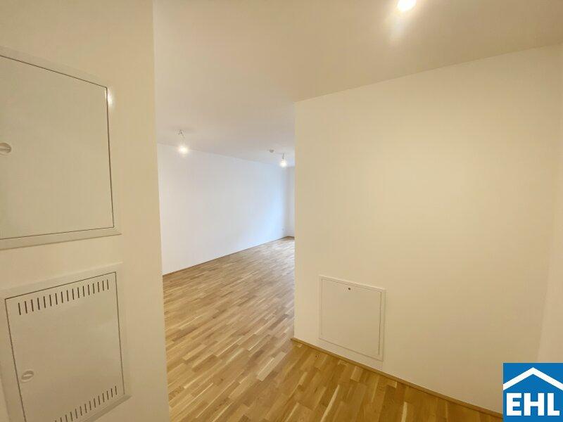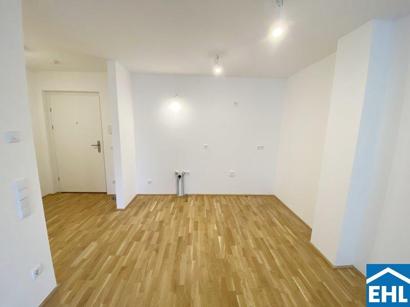 Diese helle Erstbezugswohnung überzeugt durch eine großzügige Raumaufteilung  hier ziehen Sie in ein komplett neues Zuhause ein. Der zentrale Wohnbereich ist offen gestaltet und bietet viel Platz für Wohnen, Essen und Kochen. Große Fenster sorgen für viel Tageslicht und eine angenehme Atmosphäre. Die Küche ist praktisch im Wohnraum integriert und wird in Kürze eingebaut. Das Schlafzimmer ist separat begehbar, ruhig und gut geschnitten. Von hier aus gelangen Sie direkt auf den Balkon perfekt für frische Luft und kurze Auszeiten im Alltag. Das Badezimmer ist modern ausgestattet mit Dusche, Waschbecken und Handtuchheizkörper. Das Wohnhaus setzt auf nachhaltige Energiesparsysteme, darunter eine Photovoltaikanlage auf dem Dach, um den ökologischen Fußabdruck zu minimieren.