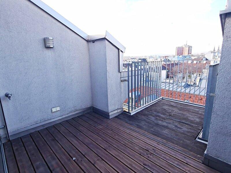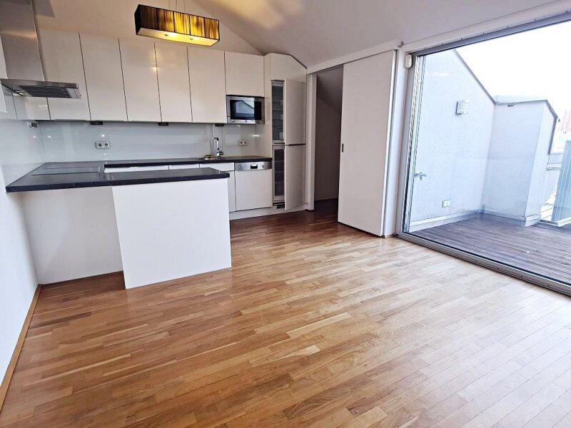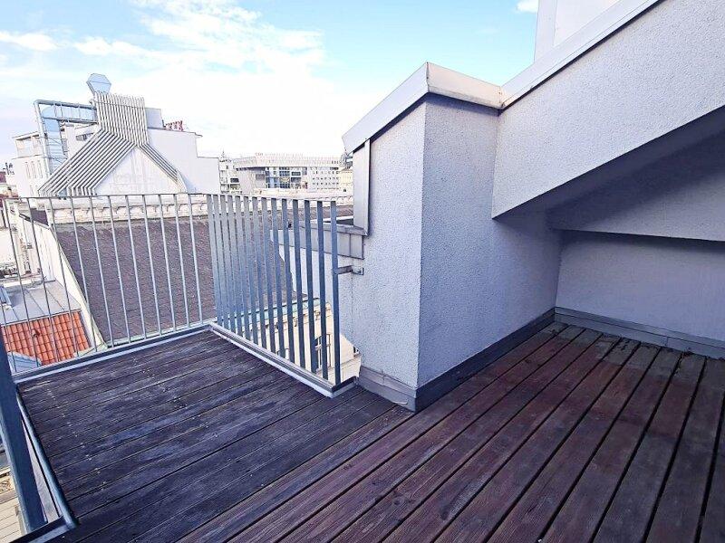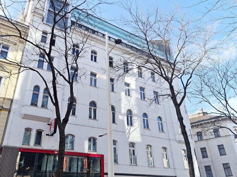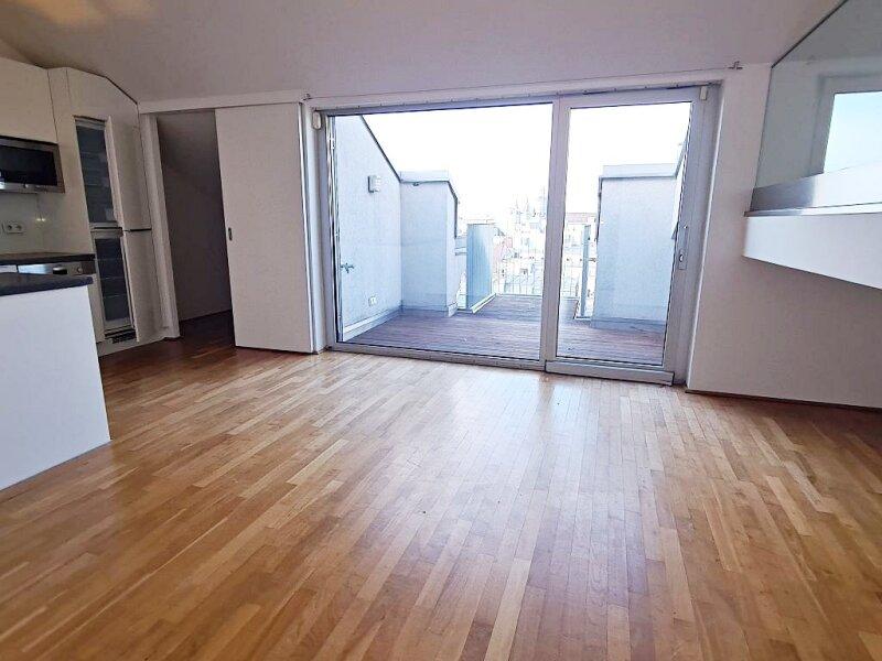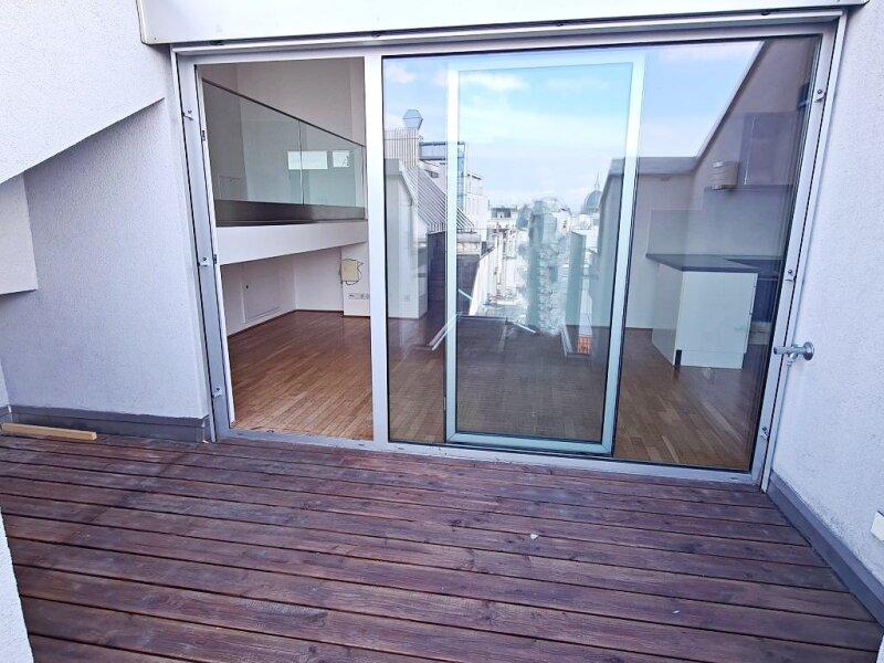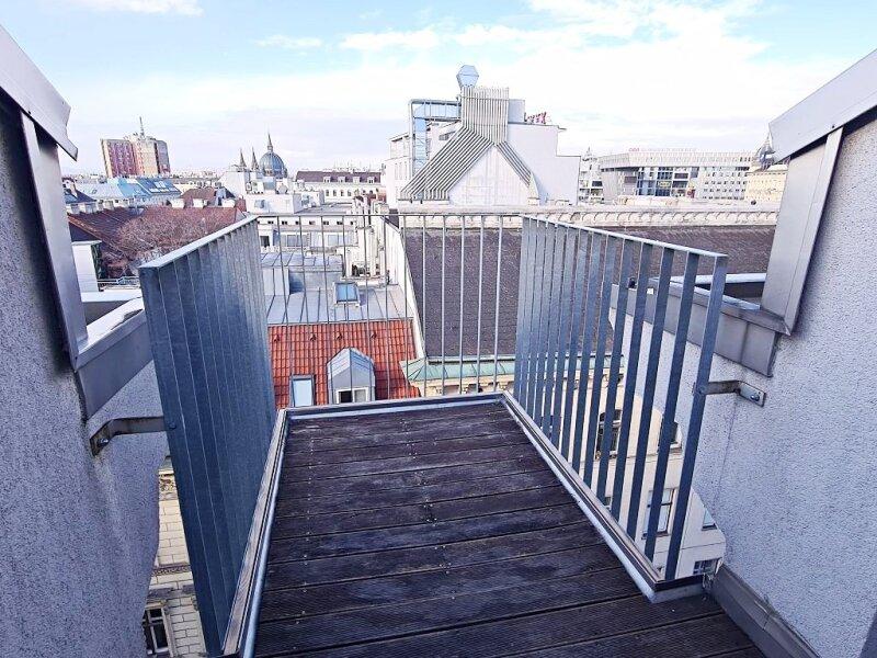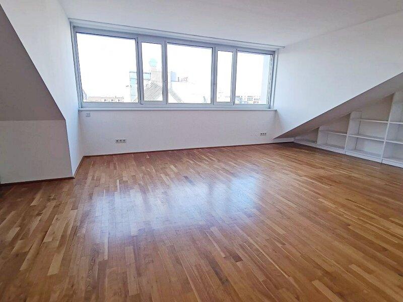 FUZO Mariahilfer Straße, 104 m2 Dachgeschoß mit 28 m2 Freifläche, 2 Zimmer, Wohnküche, Wannenbad, Parketten, Klimaanlage, Stumpergasse - Objektnr. 5646877