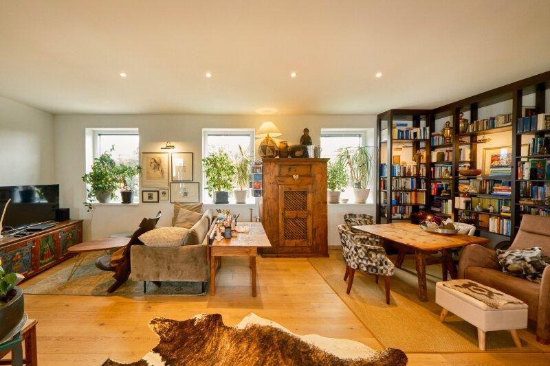 Wohn- und Kochbereich umfassen zusammen 53qm.