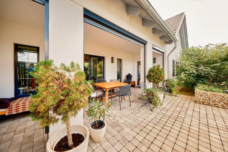 Auf die westlich ausgerichtete Terrasse mit 19qm gelangen Sie von nahezu allen Räumen.