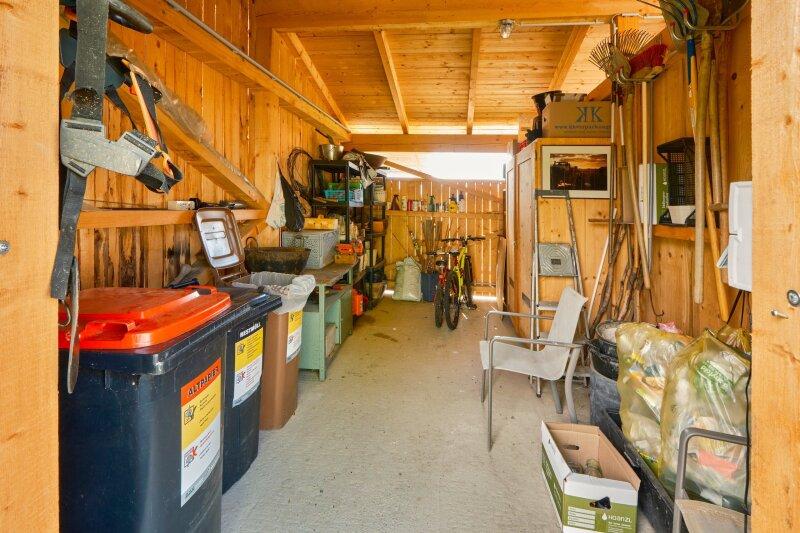 Angebauter Raum für Gartengeräte und Abfallbehälter