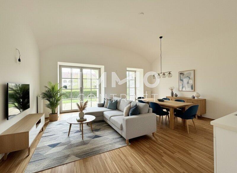 Wohnen, wo Geschichte auf modernen Lebensstil trifft: In der stilvoll revitalisierten Schlossanlage Neusiedl erwartet Sie eine besondere Gartenwohnung, die historischen Charme mit zeitgemäßem Wohnkomfort vereint. Eingebettet in eine wunderschön gepflegte Gesamtanlage mit großzügigen Grünflächen genießen Sie hier ein Wohngefühl, das Ruhe, Eleganz und Lebensqualität auf einzigartige Weise verbindet.
