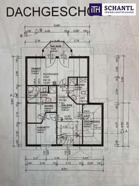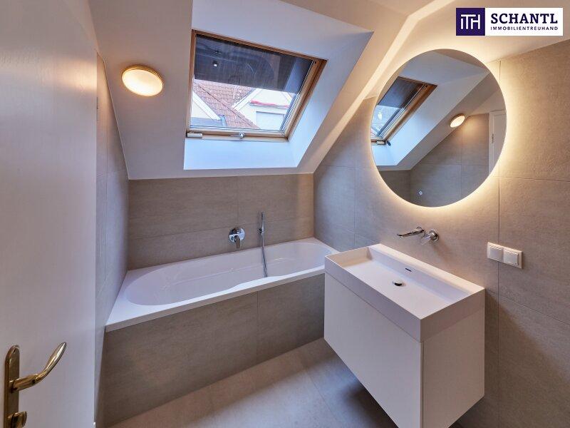 Im Dachgeschoss befinden sich 3 getrennt begehbare Schlafzimmer, wobei das größte Zimmer Zugang zum hofseitigen Balkon hat, 2 Badezimmer mit Dusche bzw. Badewanne und jeweils einem WC, sowie ein geräumiger Schrankraum.