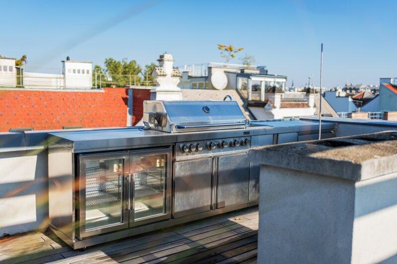 • Großzügige Dachterrasse mit atemberaubendem Ausblick,  Whirlpool, Outdoordusche, Sonnensegel, Outdoorküche, Pergola & ambiente Beleuchtung