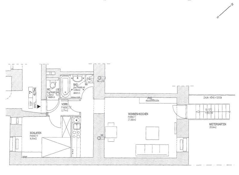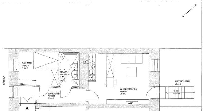 - 2-Zimmer Gartenwohnung (ca. 42 m²) mit ca. 31 m² Garten