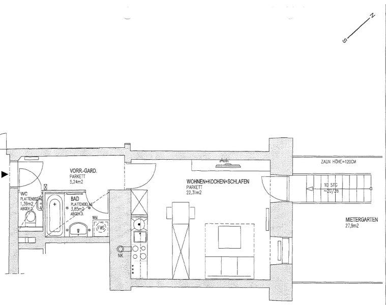 - Garçonnière (ca. 33 m²) mit ca. 28 m² Garten