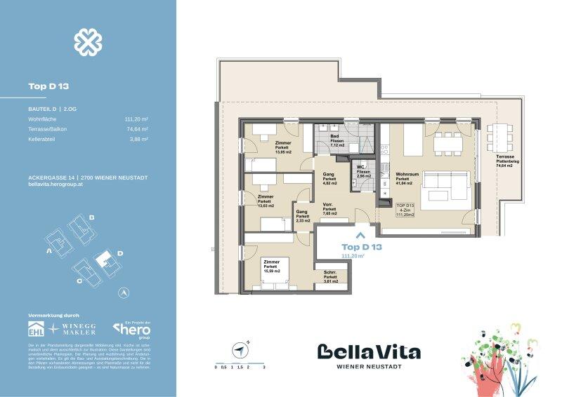 Das Wohnbauprojekt Bella Vita nahe des verzaubernden Wiener Neustädter Kanals steht für "schönes Leben" und das wird hier möglich. Im mediterranen Stil die Außen- und Allgemeinflächen: Gepflasterte Wege in Muschelkalk, Lauben und Schaukeln vermitteln Leichtigkeit, Gemütlichkeit und Wohlgefühl. Im Inneren überzeugende Raumaufteilung, stimmige Architektur, hochwertige Ausgestaltung. Und die Nachhaltigkeit stets im Blick, u.a. durch PV-Anlagen zur Energiegewinnung und einem Dachgeschoß in Holzhybridbauweise.