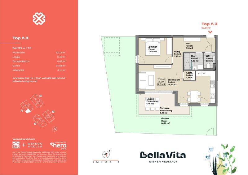 Das Wohnbauprojekt Bella Vita nahe des verzaubernden Wiener Neustädter Kanals steht für "schönes Leben" und das wird hier möglich. Im mediterranen Stil die Außen- und Allgemeinflächen: Gepflasterte Wege in Muschelkalk, Lauben und Schaukeln vermitteln Leichtigkeit, Gemütlichkeit und Wohlgefühl. Im Inneren überzeugende Raumaufteilung, stimmige Architektur, hochwertige Ausgestaltung. Und die Nachhaltigkeit stets im Blick, u.a. durch PV-Anlagen zur Energiegewinnung und einem Dachgeschoß in Holzhybridbauweise.