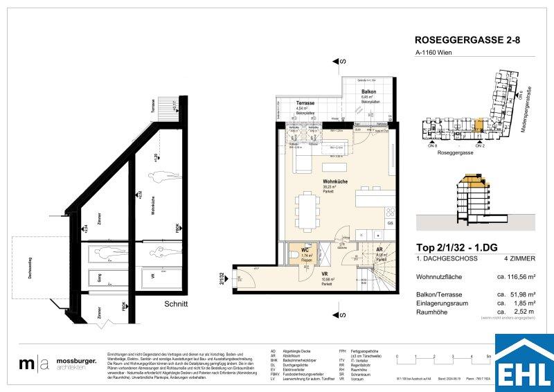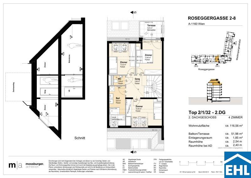 In der Roseggergasse 28, unweit des Wilhelminenbergs, entstehen 124 hochwertige Eigentumswohnungen. Die Wohnflächen reichen von ca. 39 m² bis 245 m² und bieten Grundrisse mit zwei bis sechs Zimmern ideal für unterschiedlichste Wohnbedürfnisse.