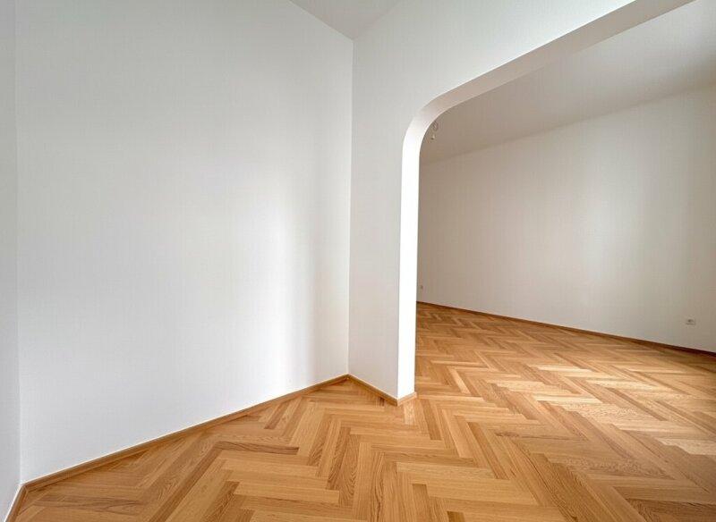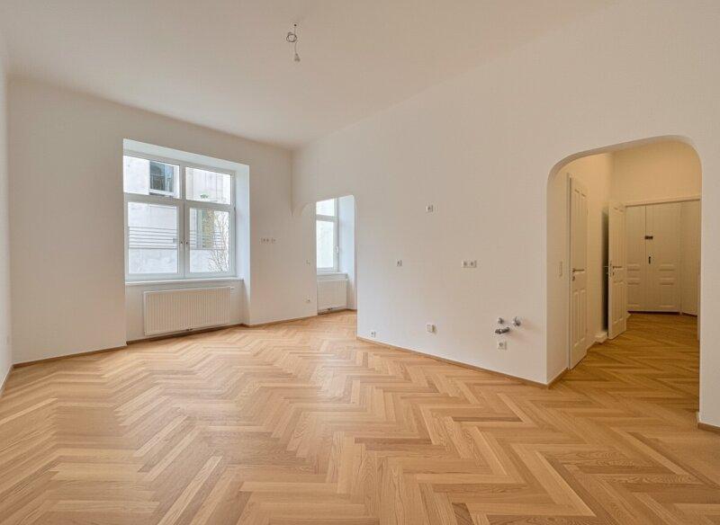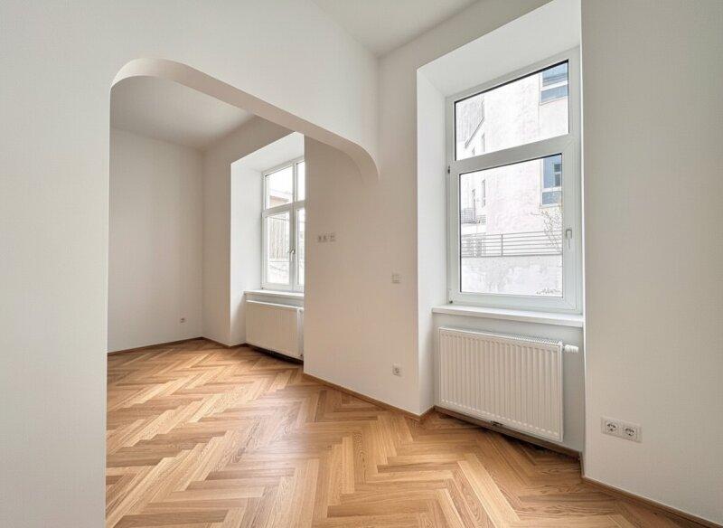 Im ersten Stock (ohne Lift) eines prachtvollen klassischen Altbaus aus der Jahrhundertwende mit verziertem Entrée und gegliederter Fassade befindet sich diese hinreißende, frisch sanierte Wohnung, die man einfach mögen muss! Vollkommen hofseitig und somit eine perfekte Oase zum Runterkommen vom oft stressigen Alltag, mit hohen Räumen und viel Licht lädt sie dazu ein, sich hier, gleich ums Eck vom 9. Bezirk, ein gemütliches Nest zu bauen. Die Wohnung zeigt, was Altbau kann - eine Nische hier, ein Bogen da und alles, nur nicht 08/15.