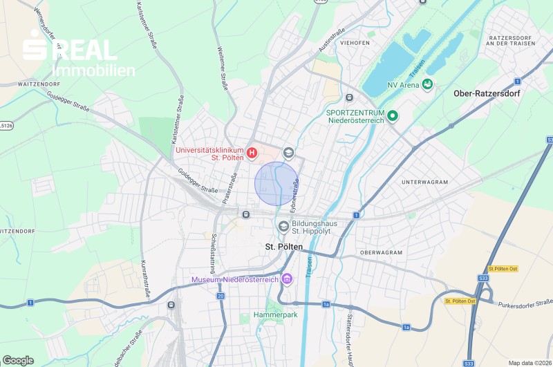 Die Lage dieser Wohnung zählt zu den gefragtesten Wohngegenden St. Pöltens: