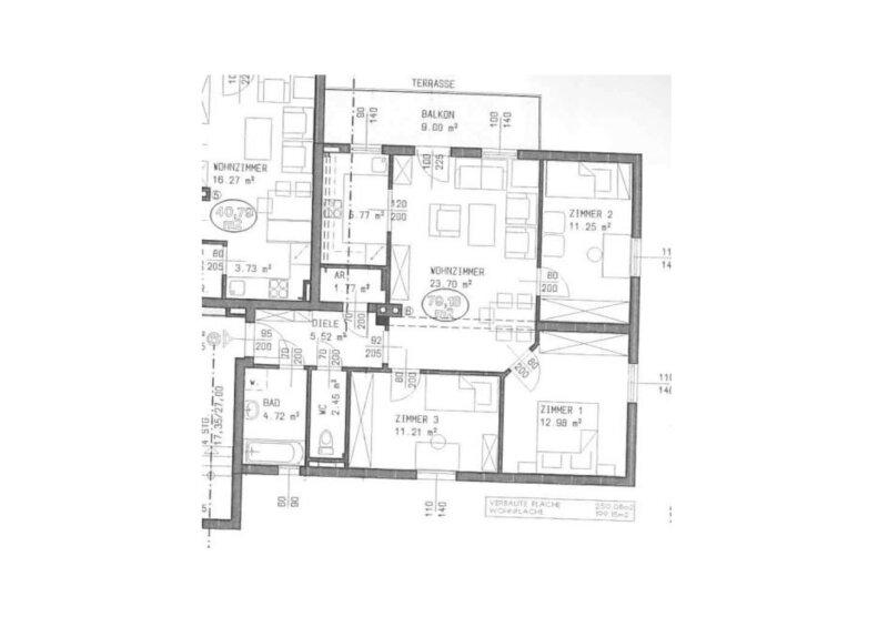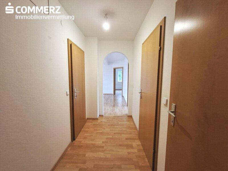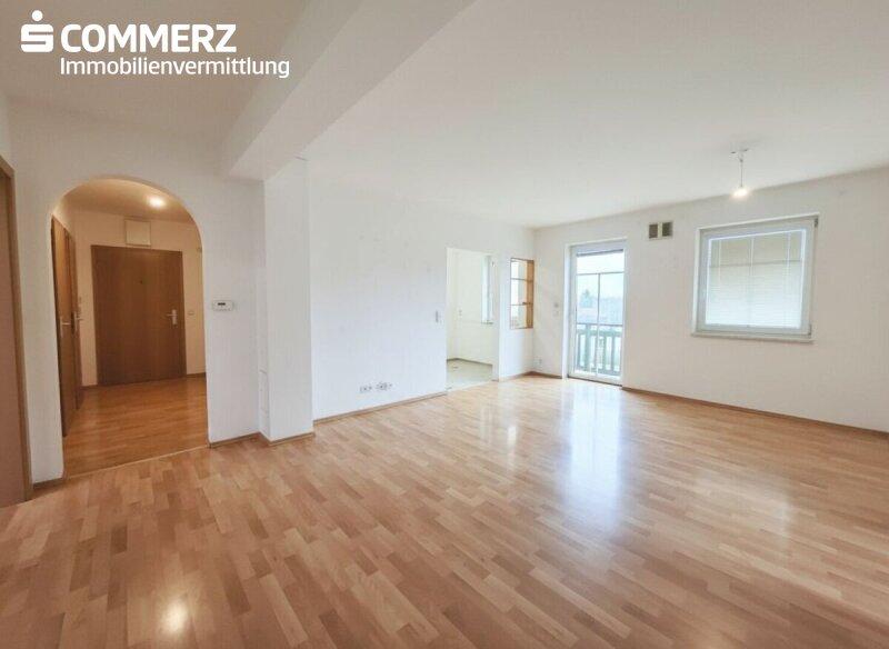 Vorraum, Badezimmer, separates WC, Abstellraum, drei Zimmer sowie ein Wohnzimmer mit Kochnische und Zugang zum Balkon