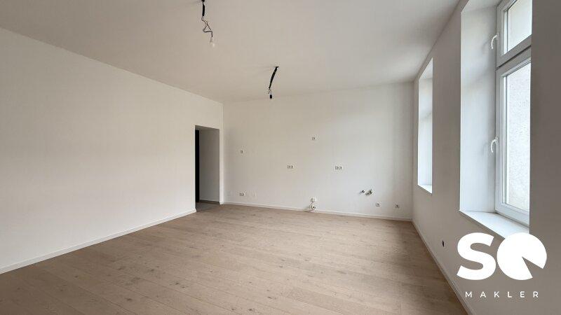 Das Badezimmer ist mit einer modernen Dusche, Waschmaschinenanschluss als auch Waschbecken ausgestattet. Ein separates WC befindet sich im Vorraum. Es erwarten Sie eine großzügige Wohnküche als auch ein eigenes Schlafzimmer. Dank neuer Fenster genießen Sie angenehme Lichtverhältnisse und ausgezeichnete Wärmedämmung, während Sie den Altbaucharakter in vollen Zügen erleben können.