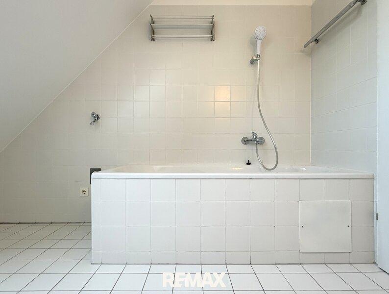 Die Garderobe abgelegt, findet sich gleich links das Badezimmer Badewanne, Dachschrägen und dieses unerwartet gemütliche Gefühl, das sofort entschleunigt. Kein steriler Raum, sondern einer, der fast schon Rückzug bietet. Angeschlossen ein hübsches Zimmer, vielseitig, ruhig, mit genau dieser besonderen Dachgeschoss-Stimmung.