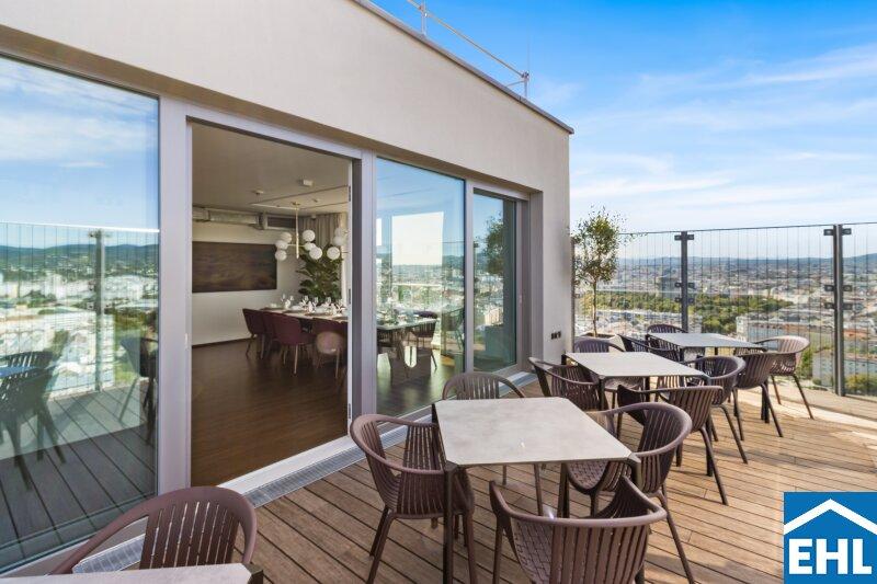 Neben Ihrem privaten Wohnbereich profitieren Sie von großzügigen, hochwertig gestalteten Gemeinschaftsflächen, die weit über das Übliche hinausgehen: Ob konzentriertes Arbeiten im Co-Working Space, entspannte Stunden in der stilvollen Bewohner Lounge oder aktive Pausen im hauseigenen Fitness- und Yogastudio hier finden Sie genau den Ort, den Sie gerade brauchen. Für gesellige Momente stehen Ihnen ein exklusiver Private-Dining-Raum, ein Gaming Room und ein einladender Kinosaal zur Verfügung. Wer kreativ tätig werden möchte, findet im professionell ausgestatteten Podcast Raum den idealen Rahmen. Ein besonderes Highlight ist die grüne Dachterrasse mit Gemeinschaftsgarten ein Rückzugsort über den Dächern der Stadt, der zum Entspannen, Gärtnern und Genießen einlädt.