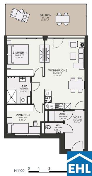 57,02 m² - 2.0 Zimmer