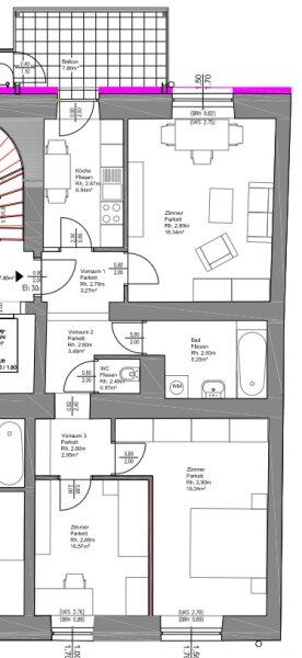 UNBEFRISTET, 70 m2 Altbau mit 8 m2 Balkon, 3 Zimmer, Küche, Wannenbad, Parketten, Randhartingergasse - Objektnr. 5656675