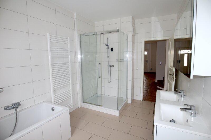 • Großzügiges Badezimmer mit Doppelwaschbecken, Dusche und Badewanne