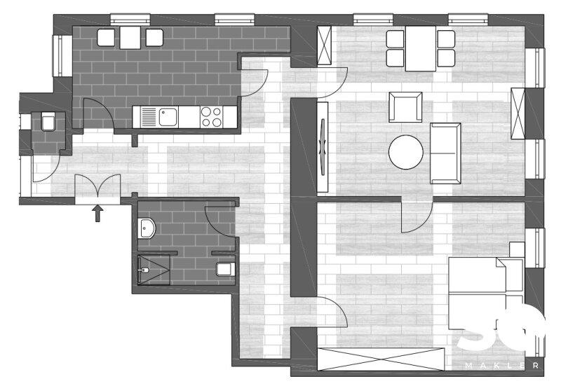 • Vorraum, 2 Zimmer, Küche, Bad, WC