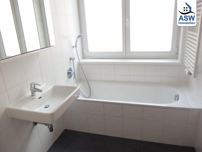 - Badezimmer mit Badewanne und Waschmaschinenanschluss, WC separat