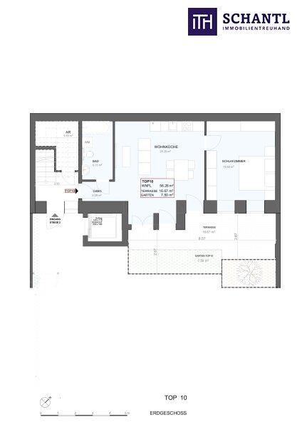 • Wohnfläche: ca. 56 m² + 17 m² Terrasse + 7 m² Eigengarten